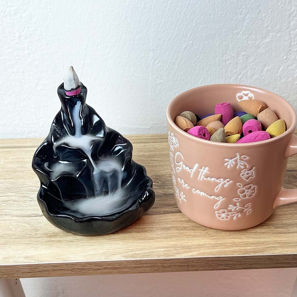 The cascading waterfal flows from the incense cones creating a mesmerizing and soothing visual effect, making it a perfect addition to any relaxation or meditation practice.